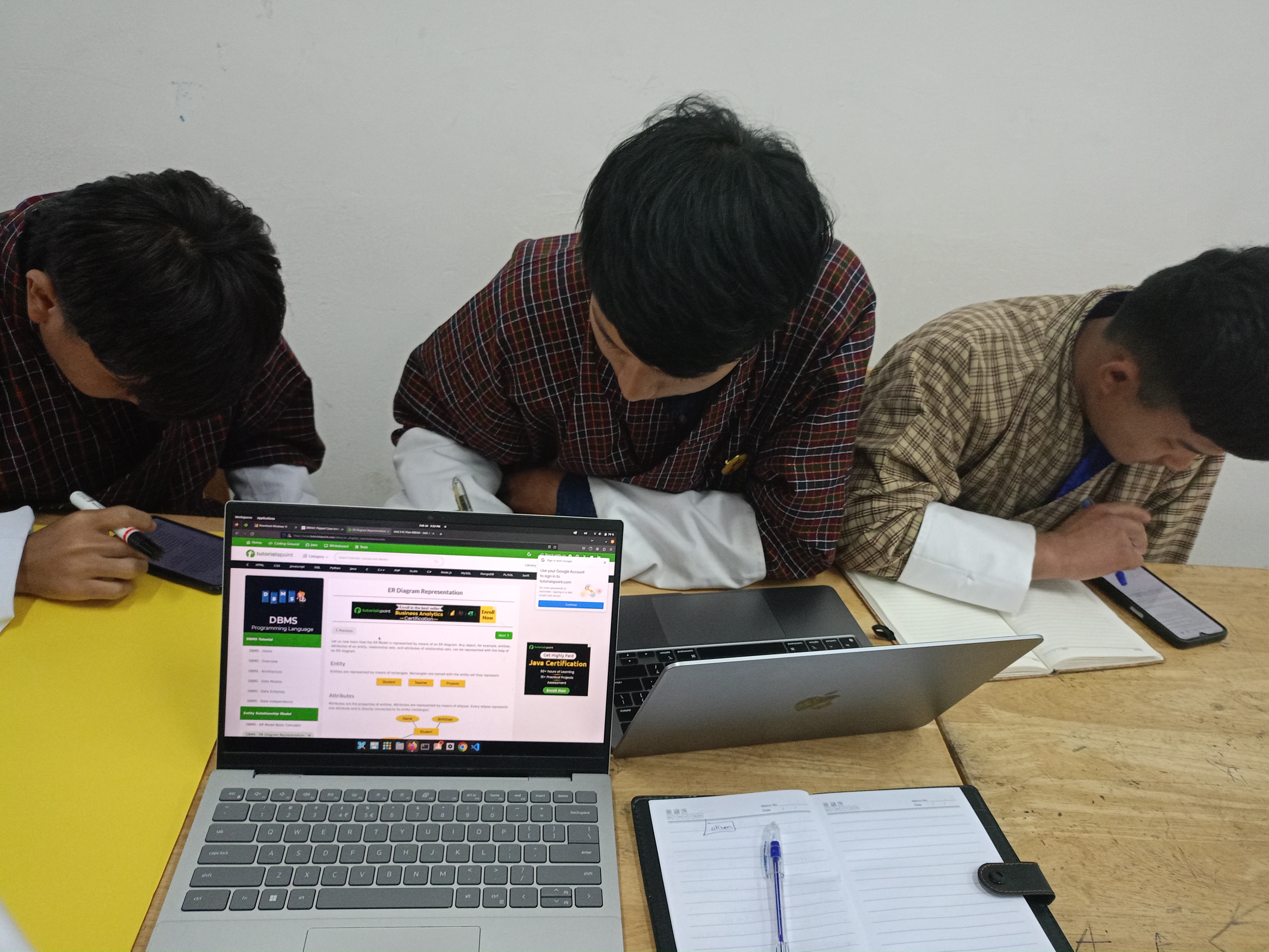 During the flipped class, we are instructed to draw an ERD for our proposed system. I really enjoyed working in a team with my group mates Tshering Wangpo Dorji, Tshewang Dorji and Yonten Kinley Tenzin. We were group number 6 and our proposed system is voter registration.