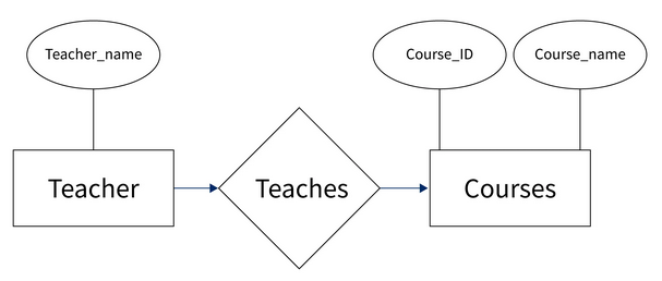 An attributes are discriptive properties possessed by each entity. It is illustrated with an oval shape. For example Teacher_name,Course_ID and Course_name are attributes.