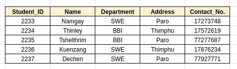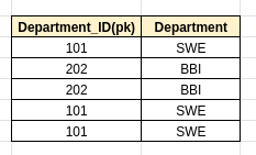 If there are 100 students in SWE, we don’t need to store its department name as SWE for all the 100 records, instead we can store it in the second table as the department_id for SWE is 101.