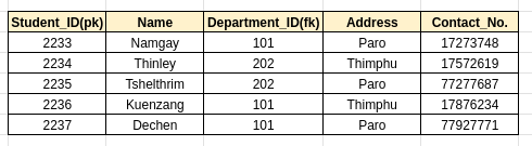 The student table contains information about students, with student_ID as the primary key. The Department Table contains information about the department with Deparment_ID as the primary key.