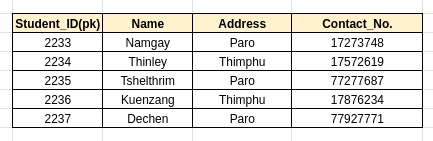 The 1NF only eliminates repeating groups, not redundancy. That’s why there is 2NF. To Be in second normal form, a table should already be in first normal form and relation should not have any partial dependency. That is, all non-key attributes are fully dependent on a primary key. Let’s change the student data table to 2NF. We will break down the table into two separate tables to achieve this:
