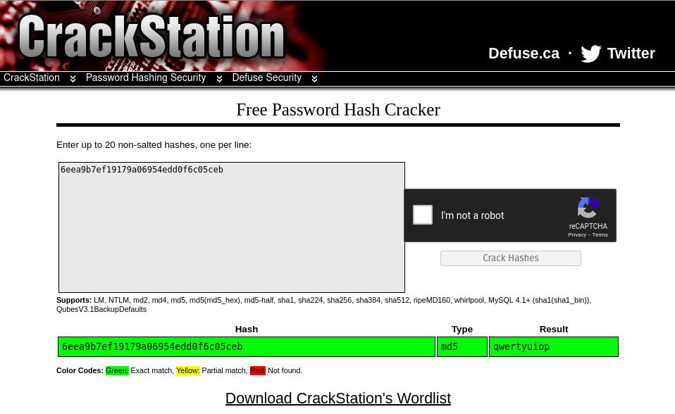 Crackstation website is extremely good for cracking weak password hashes. So I used the crackstation website to crack password hash for admin.