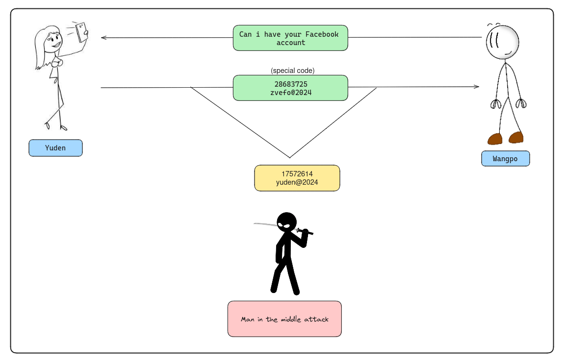 Let’s take an example.There was a couple Wangpo and Yuden. One day Wangpo asked Yuden for a facebook account. Yuden, who is concerned about security, sends her phone number and password in the special code(it is like a secret key) which Wangpo understands. Cryptographic failure is when that special code gets broken. And there comes the man in the middle attack who takes advantage of the cryptographic failure.