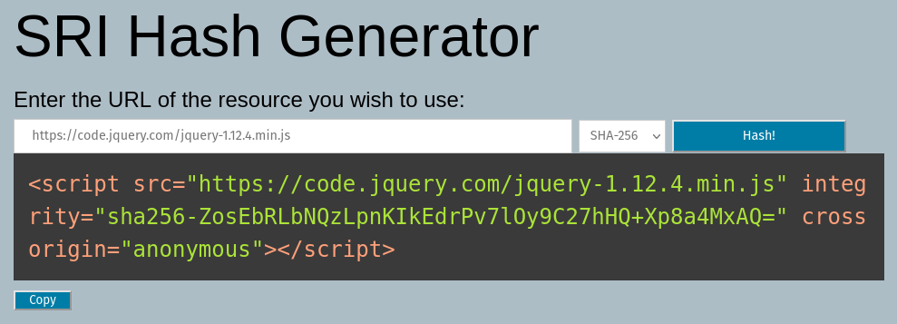 What is the SHA-256 hash of https://code.jquery.com/jquery-1.12.4.min.js?