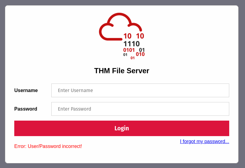 I paste the machine ip address in the browser and I was given the login form as shown below.