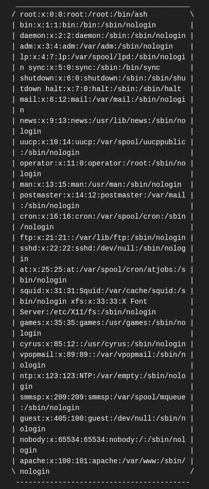 I scrolled down to the bottom and found the user’s [apache] shell [/sbin/nologin].