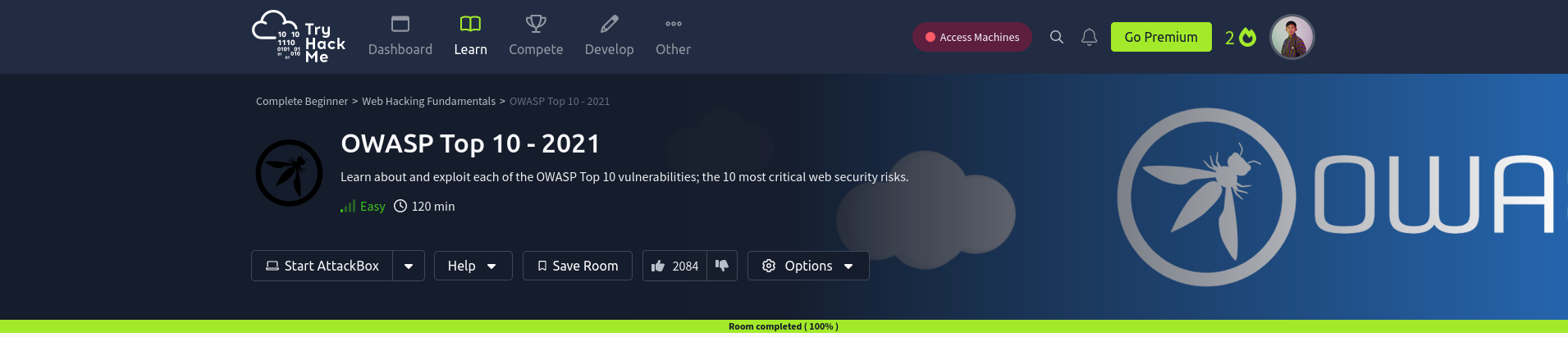 To learn cyber security is to practice, so i am going to do the tryhackme owasp top 10 room.