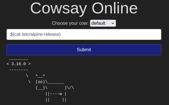 Hint: The version can be found in “/etc/alpine-release”. So I ran the command “$(cat /etc/alpine-release)”.