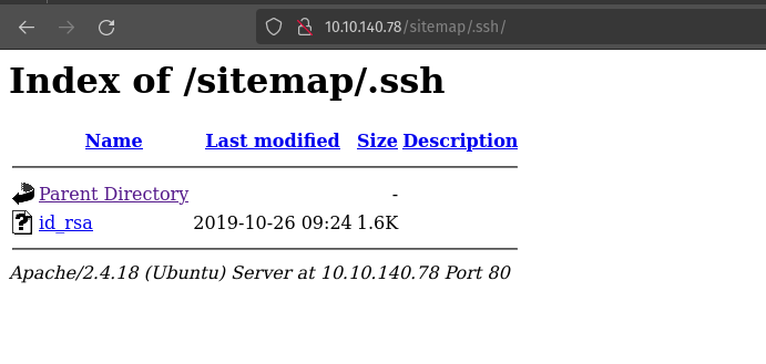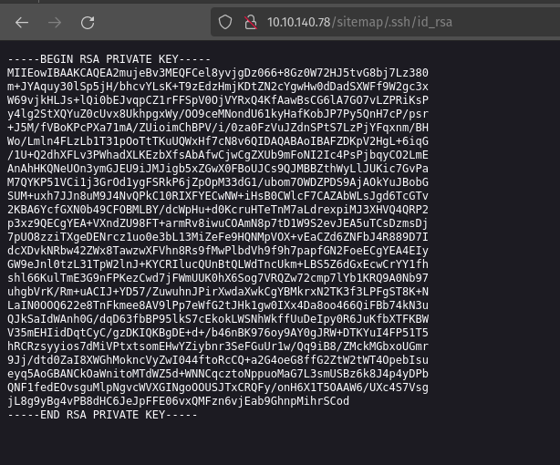 When i check it’s only a website. Let’s find further directories. There is .ssh, when I access the site, I can see an ssh key available. Let’s grab it and try to get an ssh session.