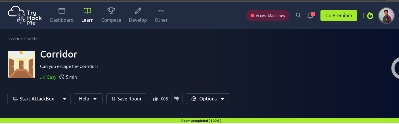 That’s it for this corridor room, see you guys on the next try hack me room walkthrough.