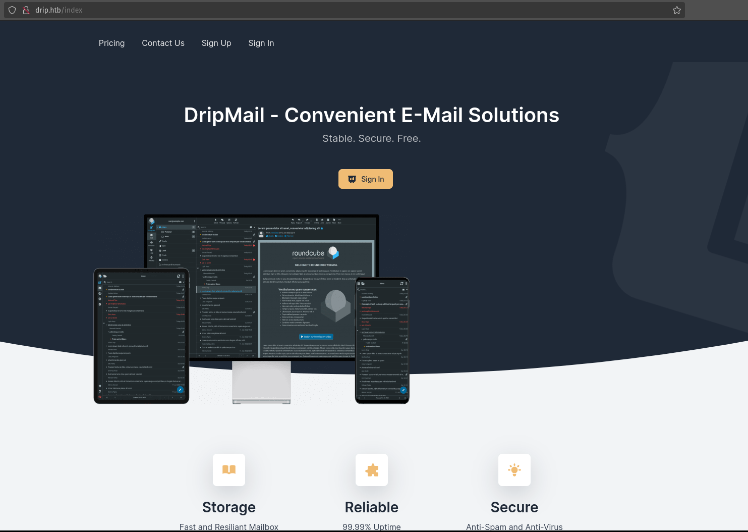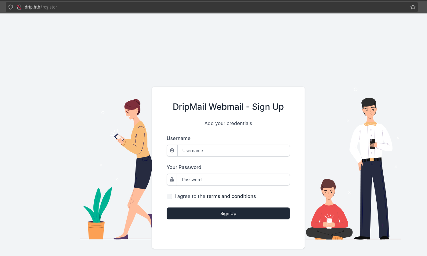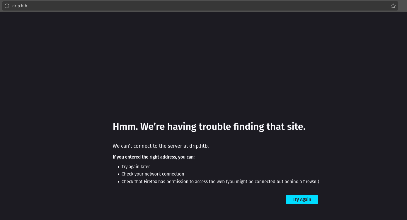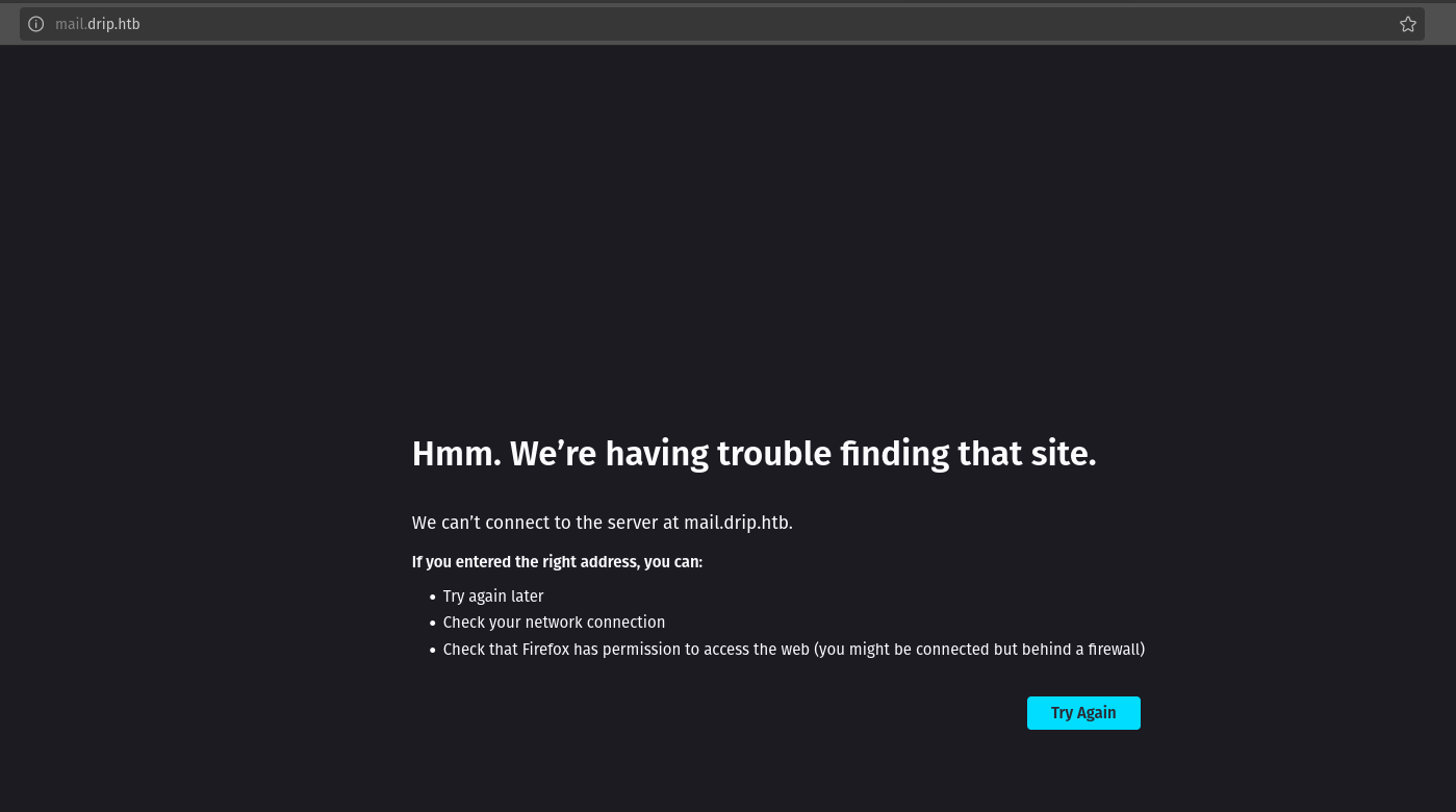 We can see that the website redirects us to “drip.htb”, so let’s add that to our hosts file.