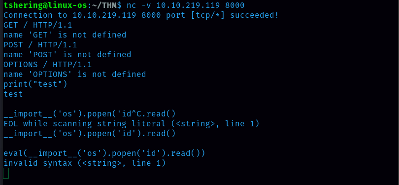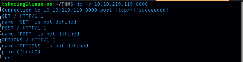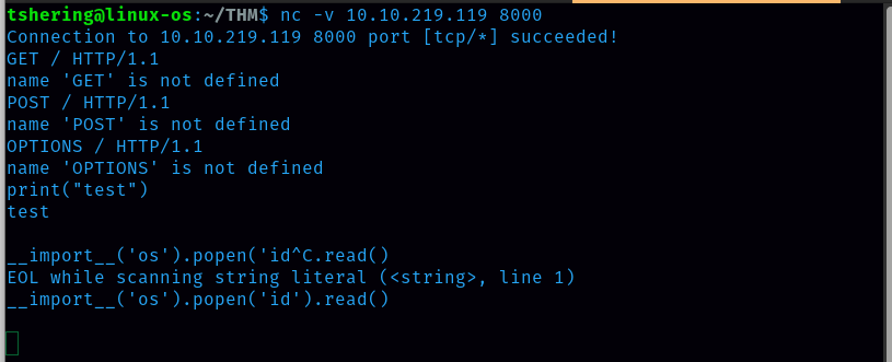 Whichever method I use is not defined. This error is related to python. I can run that basic python script since simpleHTTP server is running let’s try python code execution.